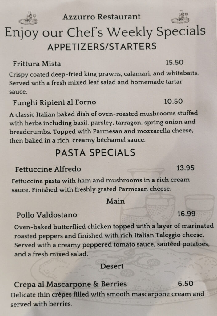 Chef’s Weekly Specials